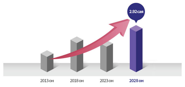 ※ Эх сурвалж: 2028 онд 2.92 сая болж өсөх төлөвтэй, Хөдөлмөр эрхлэлт, хөдөлмөрийн яам 2018-2028 оны дунд болон урт хугацааны ажиллах хүчний эрэлт, нийлүүлэлтийн төсөөлөл (мэргэжлийн дунд ангилал: цахилгаан тоног төхөөрөмжийн үйлдвэрлэлийн салбарыг үндэслэн)
