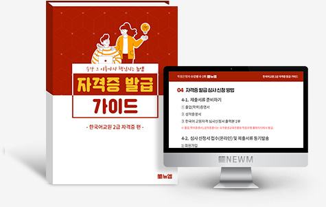 Үүнийг NEWM-д төвөгтэй, хэцүү зүйлгүйгээр шийдээрэй! Бид солонгос хэлний багшийн 2-р түвшний гэрчилгээ олгох гарын авлагыг хүргэж байгаа бөгөөд ингэснээр 20-70 насны хүмүүс энэ үйл явцыг хялбархан дуусгах боломжтой.